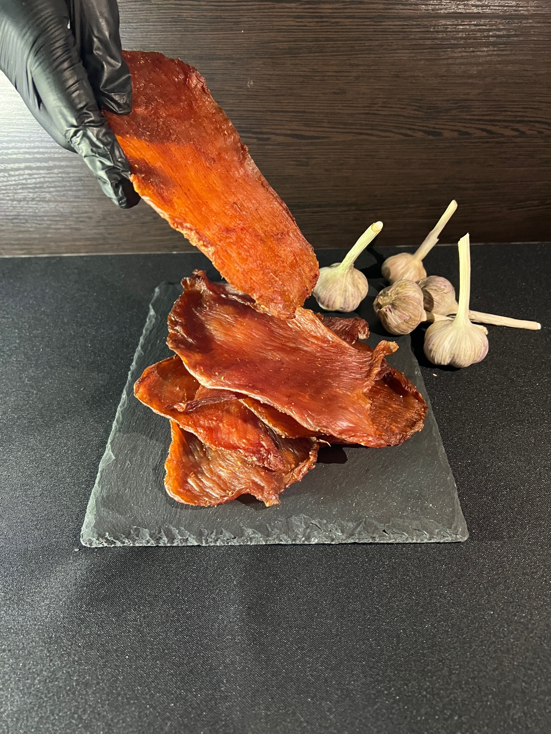 Джерки из индейки или как их еще называют, мясные чипсы из индейки - настоящий деликатес для ценителей качественной пищи. Это сушеное мясо индейки. Мы используем только самое нежное мясо грудки индейки, которое затем пропитываем авторским маринадом из натуральных специй и трав без ГМО. Такой подход позволяет сохранить естественный вкус и аромат мяса, при этом делая его более нежным и невероятно вкусным. Наша продукция отличается высоким качеством и безопасностью, поэтому вы можете быть уверены в том, что выбираете лучшее для себя и своих близких. Такие снеки отлично подходят для перекуса или же как закуска!