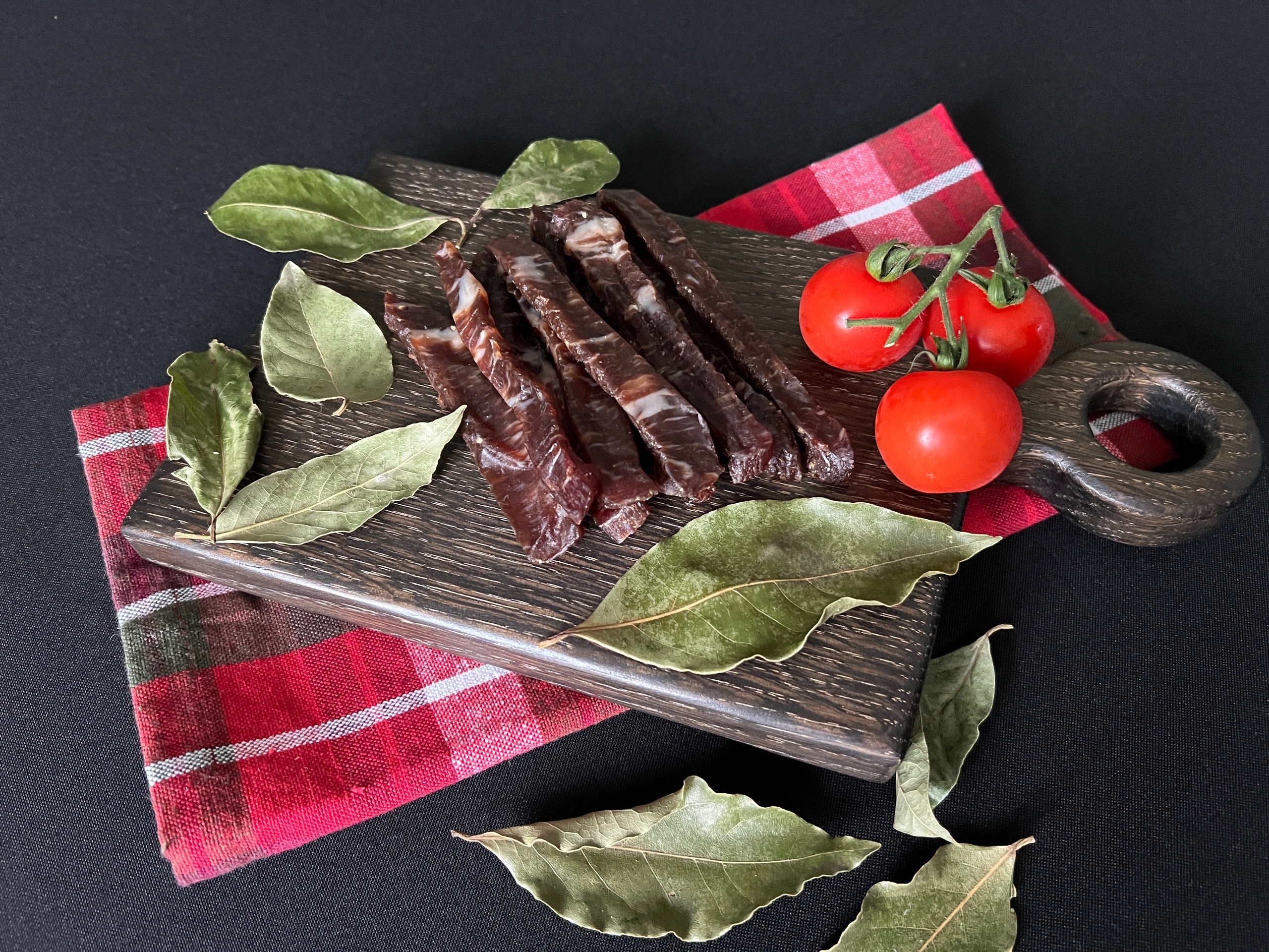 Вяленая говядина изготовлена исключительно из мраморной говядины Блэк Ангус с незначительным добавлением трав и специй. Наша продукция - это настоящий деликатес для ценителей высококачественной говядины. Попробуйте наши изысканные деликатесы прямо сейчас и ощутите разницу!